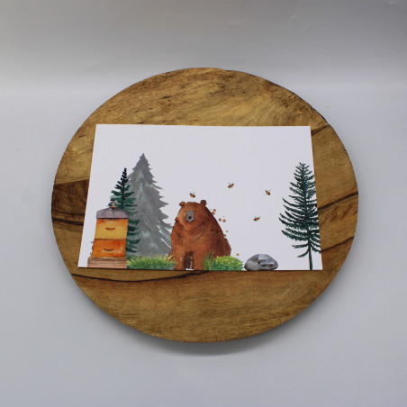Commandez la carte à message colorée et féérique d'Hubert, l'Ours Farouche.