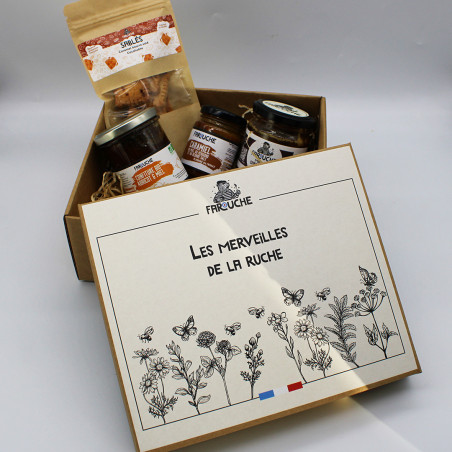 Coffret (vide - à composer) avec calage naturel en fibre de bois pour y intégrer votre sélection de produits de la ruche.