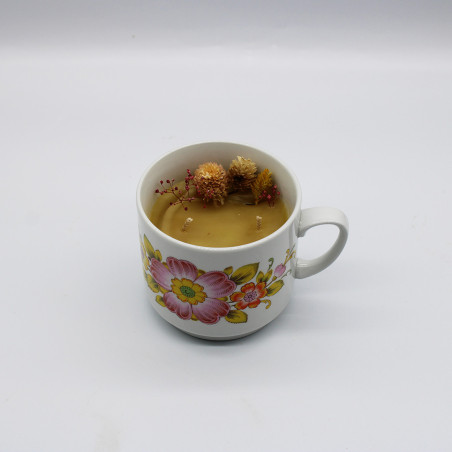 Chaque bougie est versée dans un contenant de seconde main, soigneusement chiné et sélectionné pour son charme unique.